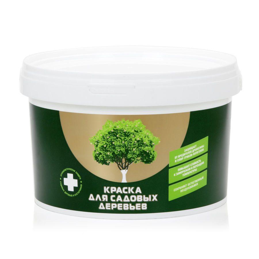 Белая матовая экологичная краска для защиты и декоративной отделки стволов и крупных ветвей садовых деревьев и кустарников. Краска для плодовых деревьев образует покрытие, предохраняющее от насекомых-вредителей и спор грибов-патогенов, защищает кору молодых деревьев от солнечных ожогов, повышает стойкость плодовых деревьев к заморозкам и резким температурным перепадам.